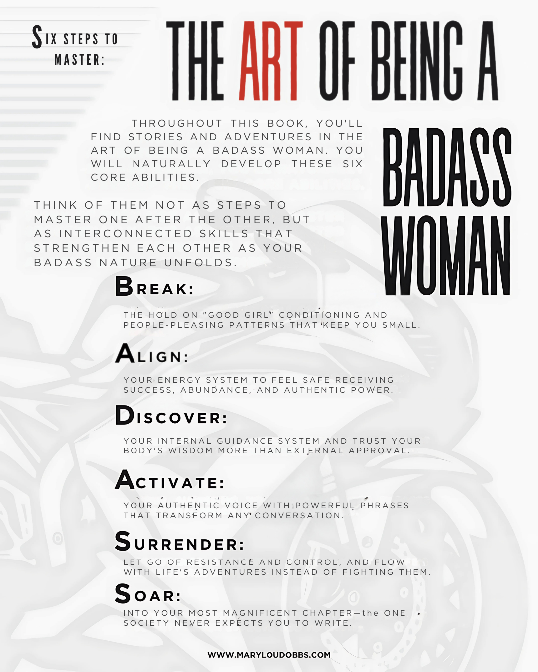 The Art of Being a Badass Woman teaches you essential skills to become unstoppable: confidently speaking your truth, setting boundaries without guilt, and owning your space. Learn how to turn dismissals into motivation, fear into power, and transform every "you're too much" into "I'm perfectly enough."
